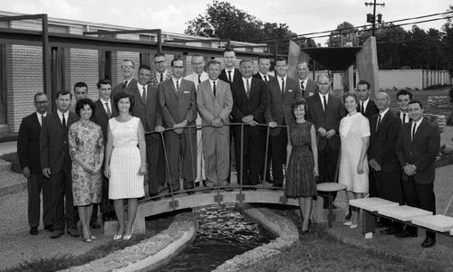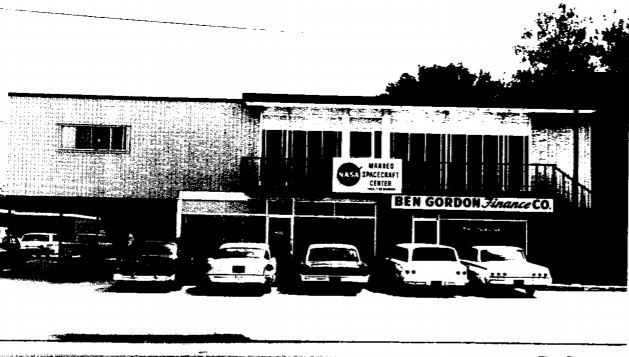Gilruth and other officials of the Space Task Group reacted quickly to the Webb announcement. The very next day they flew into Houston to begin a search for an estimated 100,000 square feet of temporary floor space. Moving began in October 1961, when Martin A. Byrnes, as the local manager, and a small cadre of center operations, procurement, and personnel employees opened offices in Houston's Gulfgate Shopping City. By mid-1962, when the move was completed, activities were scattered in 11 locations, occupying 295,996 square feet of leased office and laboratory space in the vicinity of Telephone Road and the Gulf Freeway. For both old and new employees, a street map was a necessity in the coordination of information among the various offices located in the dispersed buildings. Besides the leased quarters, NASA personnel liberally used surplus facilities..."