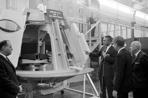 In 1963, during construction of the MSC at Site 1, JFK toured the faclilities here to see mock-ups of the proposed Gemini and Apollo hardware: