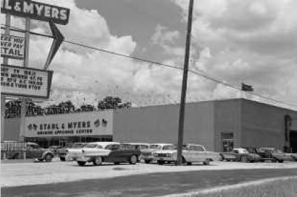 The Houston Petroleum Center and Stahl and Myers Building between them housed the Project Mercury, Gemini, Apollo Flight Operations Divisions and Mission Control teams. The old Stahl and Myers Discount Appliance Center was opposite Site 4 and shared the building with Oshman's Sports Outlet warehouse, with NASA being located on the upper floor. Both buildings have now gone; the discount center was adjacent to the main road and has been replaced with a large Walmart, set somewhat further back from the road with a grassy area and Mexican restaurant where the old buildings used to be. An old advertising hoarding appears to be contemporary with the old Oshman's site and is all that remains from the NASA era.